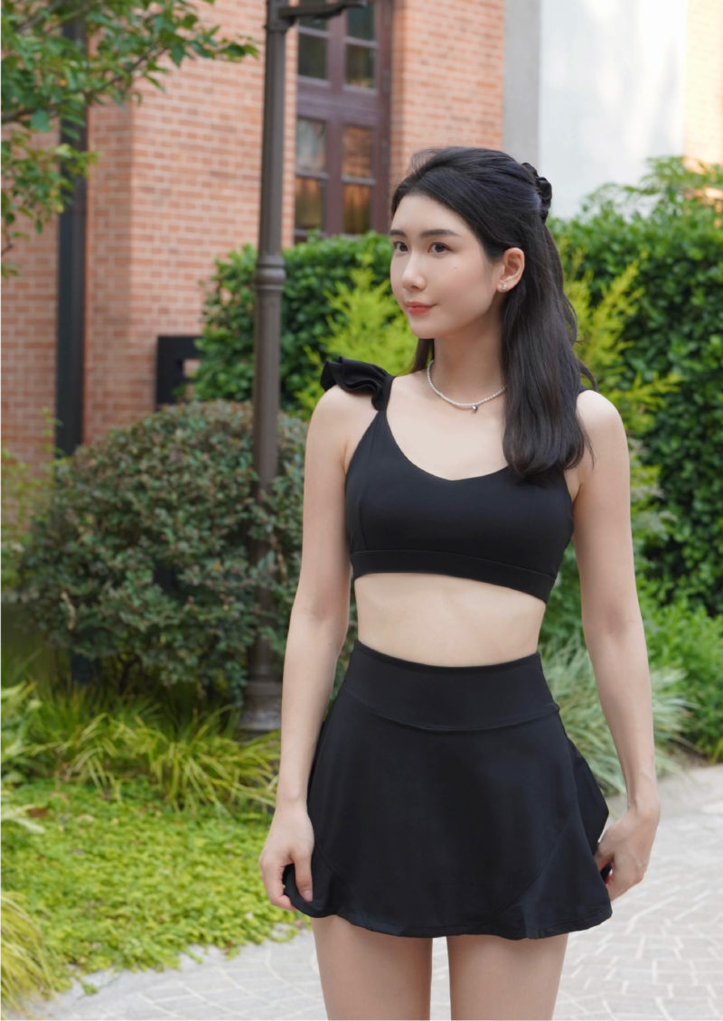 •活潑甜美的雙層荷葉邊造型肩帶,完美修飾肩線💛